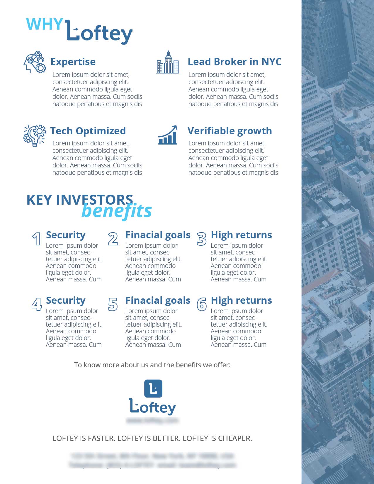 Con el fin buscar inversores de alto perfil para un nuevo proyecto se desarrolló este folleto promocional.